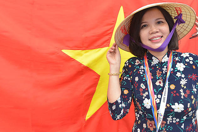 Nón lá, áo dài chính là vẻ đẹp khiến nhiều bạn bè quốc tế tìm đến “Gian hàng đoàn kết” của đoàn đại biểu Việt Nam trong những ngày qua tại Liên hoan.