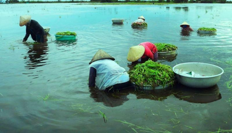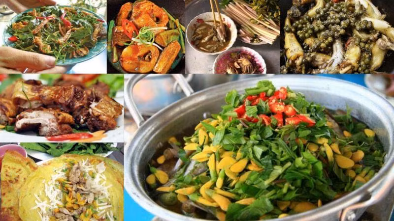 Giữa mênh mông nước, cánh đồng xanh chứa đầy phù sa mang lại sức sống mới cho những cây sen, bông súng, cỏ năng, rừng tràm thêm xanh tốt. Đây cũng là mùa của những đàn chim bay về làm tổ, sinh sôi, nảy nở trên những rừng tràm, rừng đước. Những bông điên điển khoe sắc vàng ven sông, dọc kênh rạch được người dân hái vội để chế biến thành những món ăn làm nộm, xào, lẩu với cá linh. Những con cá lóc đồng tròn trắng bụng, cua đồng căng càng sẽ được chế biến thành bát canh chua với bông súng, bông lục bình, lá sen non, hẹ nước...