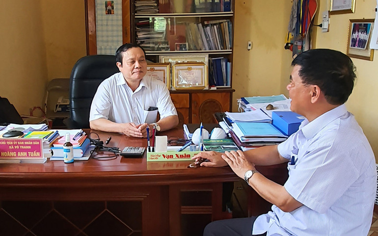 Tác giả trao đổi với chủ tịch UBND xã Vô Tranh Hoàng Anh Tuấn.