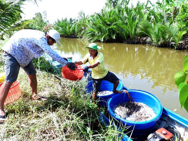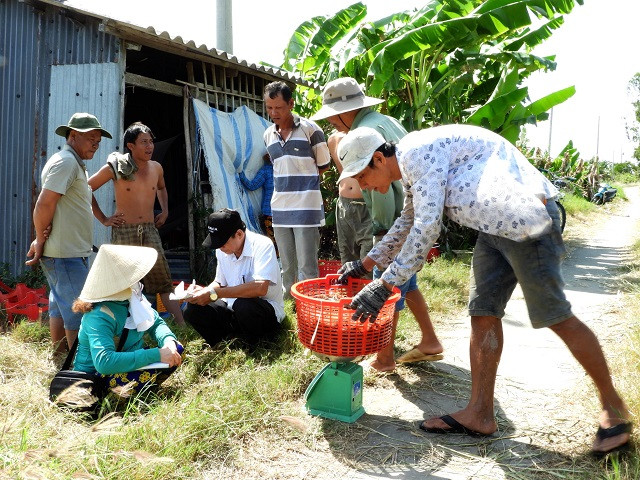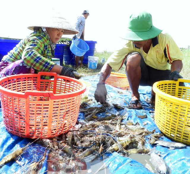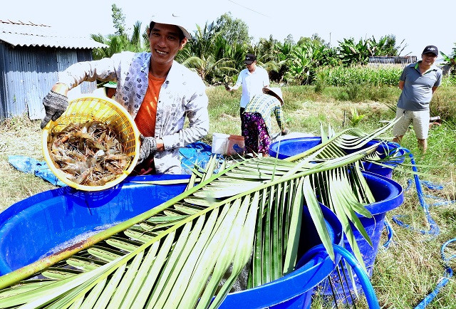 Niềm vui trúng vụ tôm càng xanh của nông dân xã Biển Bạch Đông.
