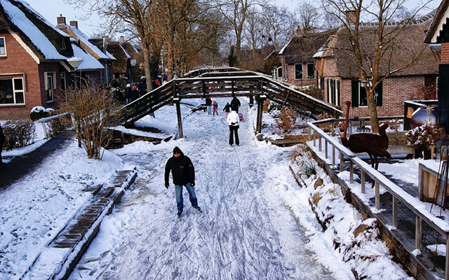 Thu sang, những tán lá đỏ, lá vàng phủ kín những góc sân được phản chiếu qua làn nước trong vắt. Ngồi bên mạn thuyền, bạn có thể nhìn thấy những đàn cá bơi lội dưới tận đáy kênh. Mùa đông tới, ngôi làng cũng là điểm đến hấp dẫn với người yêu thích trượt băng. Những dòng kênh giờ đây đã đông cứng, trở thành đường trượt lý tưởng cho cư dân và khách du lịch.