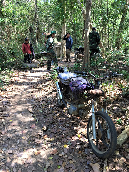 Lâm tặc sử dụng xe máy độ chế vào rừng khu vực rừng giáp ranh giữa Khu BTTN Ea Sô và huyện Krông Pa, tỉnh Gia Lai phá rừng bị lực lượng kiểm lâm Khu BTTN Ea Sô bắt giữ.