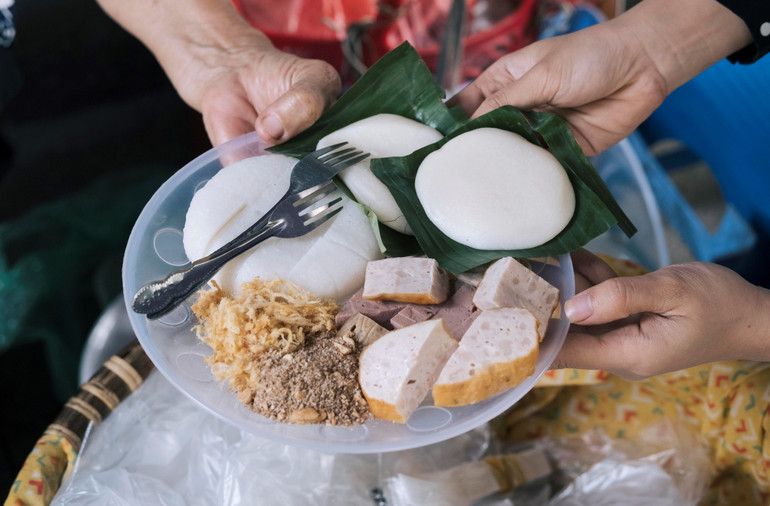 | Mỗi suất cơm, bánh dày giò này có giá 20 nghìn đồng. |