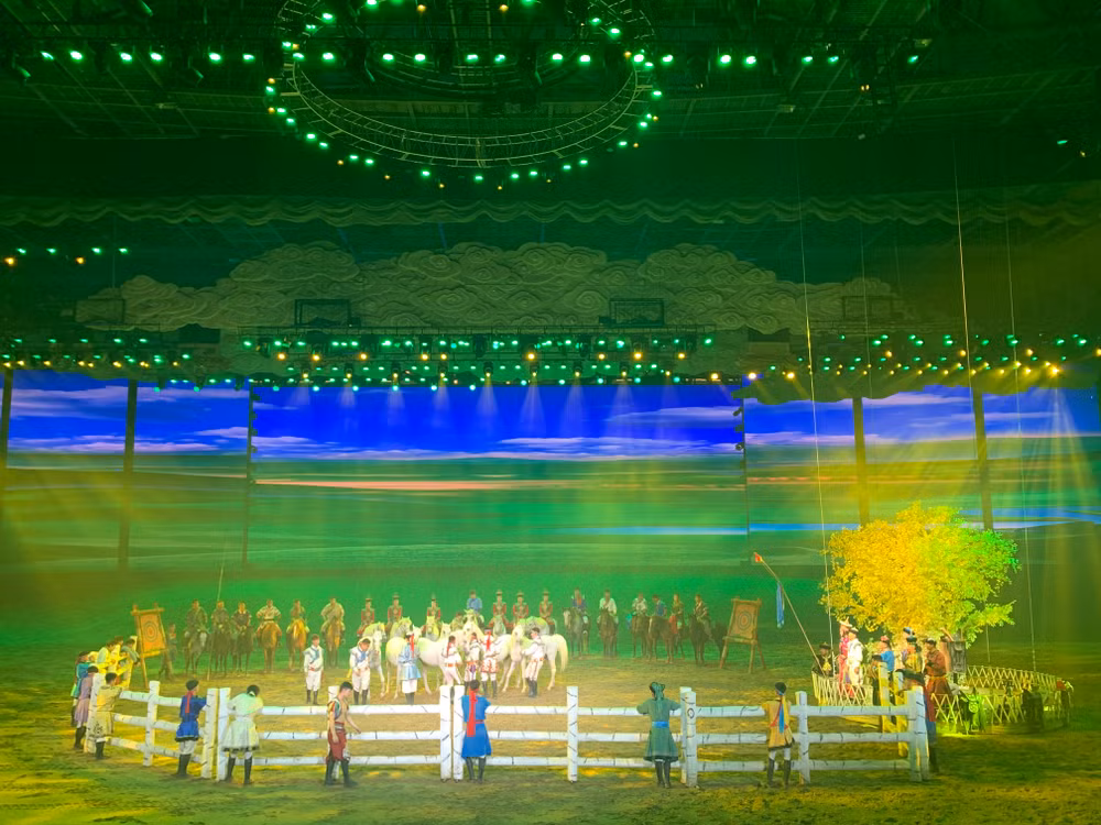 Với sự tham gia của hàng trăm diễn viên và hơn 140 chú ngựa Mông Cổ oai phong, hùng dũng, người xem có thể cảm nhận, loài ngựa gắn bó với mỗi người dân du mục, từ khi còn nhỏ, đến khi trưởng thành, gắn liền với văn hóa bản địa, trở thành một phần quan trọng, tượng trưng cho mảnh đất thảo nguyên này.