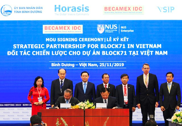 Sau Lễ khai mạc, Phó Thủ tướng Vương Đình Huệ đã dự Lễ ký kết biên bản ghi nhớ dự án BLOCK71 giữa Tổng Công ty Becamex IDC và Trường Đại học quốc gia Singapore (NUS), để hỗ trợ hoạt động khởi nghiệp và đổi mới sáng tạo. Dự án này sẽ tạo ra luồng tài năng, công nghệ và khởi nghiệp hai chiều bằng cách hỗ trợ đổi mới và phát triển doanh nhân ở cả hai nước.