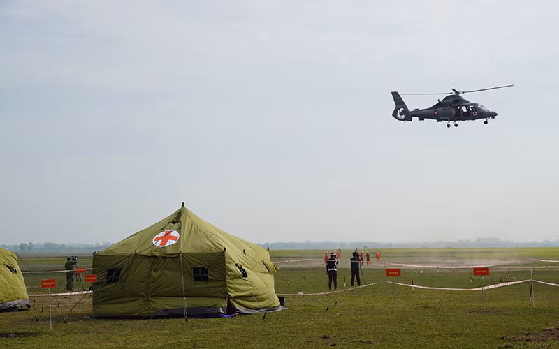 Một số hình ảnh tại cuộc diễn tập chung về cứu hộ, cứu nạn khu vực biên giới trên đất liền giữa lực lượng quân đội Việt Nam và Campuchia: