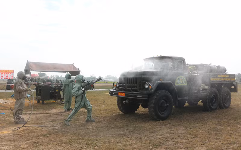 Tình huống giả định cơn bão số 9 với diễn biến phức tạp đã đổ bổ vào huyện Chanthrea, tỉnh Svay Riêng, Campuchia gây sự cố rò rỉ hóa chất tại một số khu vực của huyện này. Phía Campuchia đã có công điện khẩn đề nghị phía Việt Nam hỗ trợ lực lượng cứu hộ, cứu nạn. Bộ Quốc phòng Việt Nam nhanh chóng triển khai các lực lượng tiếp cận, phối hợp quân đội Campuchia ứng phó sự cố rò rỉ hóa chất, cứu hộ người dân ra khỏi vùng nguy hiểm.