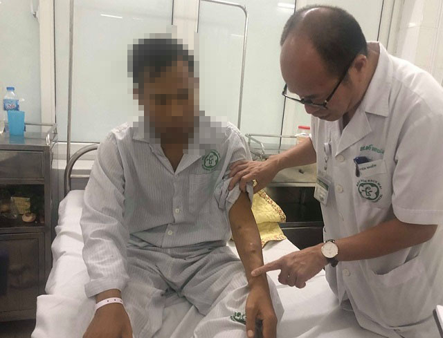 Nằm đối diện giường của anh Hồ Sỹ H là một bệnh nhân nam nhập viện với tình trạng men gan rất cao, da và mắt vàng. Bệnh nhân cho biết trước đó cơ thể hoàn toàn khỏe mạnh. Hai năm trước bệnh nhân có đi xăm tay và chân, rất có thể nguy cơ nhiễm viêm gan B từ việc xăm trổ này.