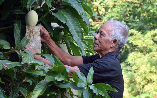 Ngồi im lặng được một lúc, rồi như nhớ lại chuyện trồng xoài trước đây, chú Bảy kể, hồi đó chưa biết nhiều đến khoa học kỹ thuật, nên thu hoạch đạt năng suất không cao. Cũng như nhiều nông dân khác, mười mấy năm trước cũng chưa nghĩ gì nhiều đến chuyện sản xuất sạch, nên trái xoài chỉ bán trong nước, mà giá cả cũng bấp bênh.