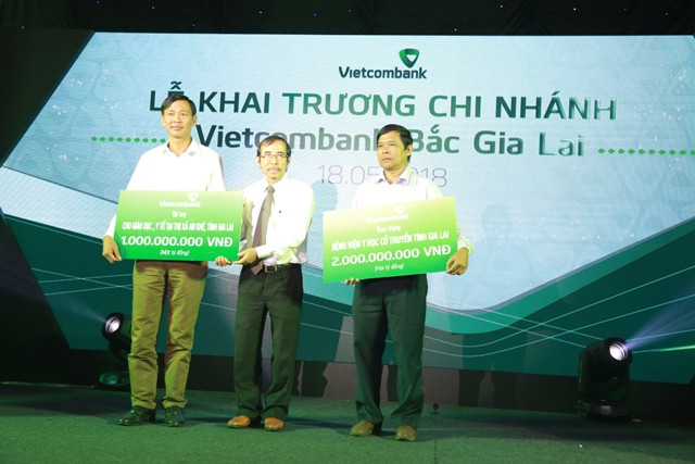 Nhân dịp khai trương chi nhánh Vietcombank Bắc Gia Lai, nhằm tiếp tục khẳng định một hình ảnh, thương hiệu ngân hàng luôn gần gũi, thực hiện tốt trách nhiệm với cộng đồng, Ban Lãnh đạo Vietcombank đã quyết định trao tặng thị xã An Khê – tỉnh Gia Lai số tiền một tỷ đồng để đầu tư cơ sở vật chất, trang thiết bị cho trường học và trạm y tế; trao tặng Bệnh viện Y học cổ truyền Gia Lai thiết bị y tế và xe cứu thương trị giá hai tỷ đồng.