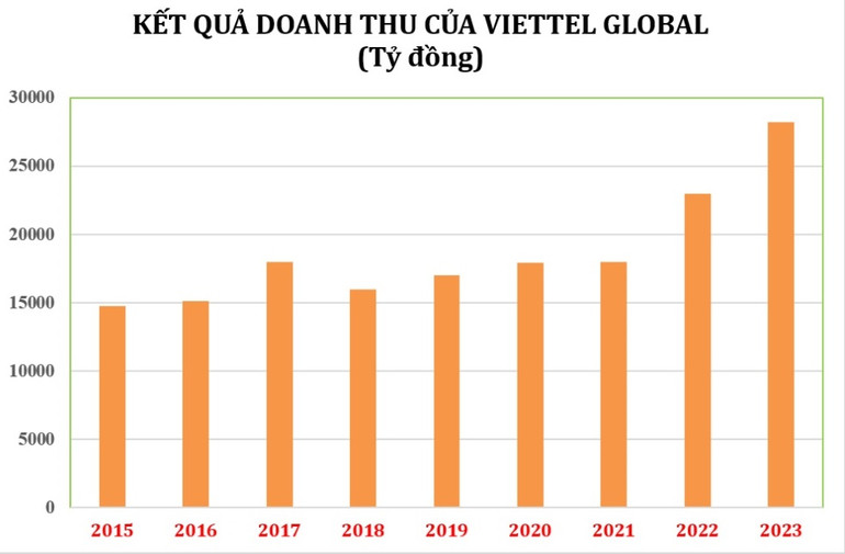 Báo cáo cho thấy, con số doanh thu sau kiểm toán không thay đổi nhiều so với báo cáo tự lập. Tổng doanh thu bán hàng và cung cấp dịch vụ hợp nhất năm 2023 của Viettel Global đạt 28.200 tỷ đồng, tăng 19,4% so với năm 2022. Quy đổi tỷ giá thời điểm cuối 2023, doanh thu của Viettel Global tương đương 1,18 tỷ USD.