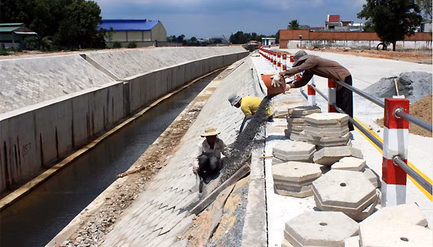 Khắc phục sự cố sạt lở, lún nứt kênh Ba Bò.