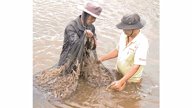 * Thu hoạch tôm thẻ chân trắng ở xã Phước Dinh, huyện Thuận Nam, tỉnh Ninh Thuận.
