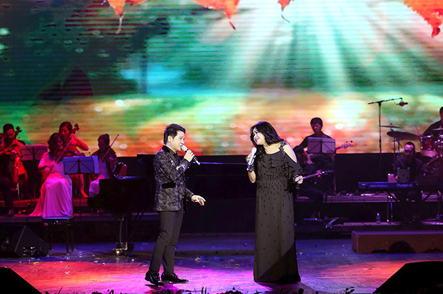 Nghệ sĩ Thanh Lam và nghệ sĩ Trọng Tấn biểu diễn trong đêm nhạc Phú Quang. Ảnh: HÒA NGUYỄN