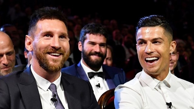 Messi (trái) có giải an ủi với danh hiệu Tiền đạo xuất sắc nhất mùa Champions League 2018-19, còn Ronaldo thì phải ra về tay trắng sau lễ trao giải. (Ảnh: Getty Images)