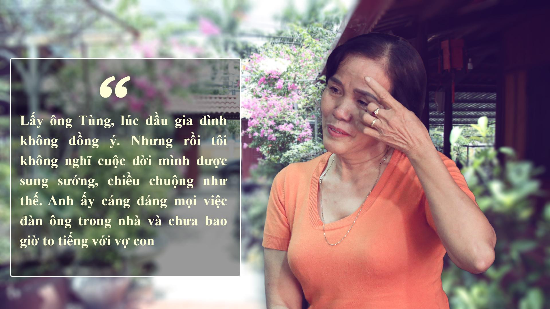 “Lấy ông Tùng, lúc đầu gia đình không đồng ý. Nhưng rồi tôi không nghĩ cuộc đời mình được sung sướng, chiều chuộng như thế. Anh ấy cáng đáng mọi việc đàn ông trong nhà và chưa bao giờ to tiếng với vợ con”, mắt bà Hoa long lanh nhìn ông Tùng.