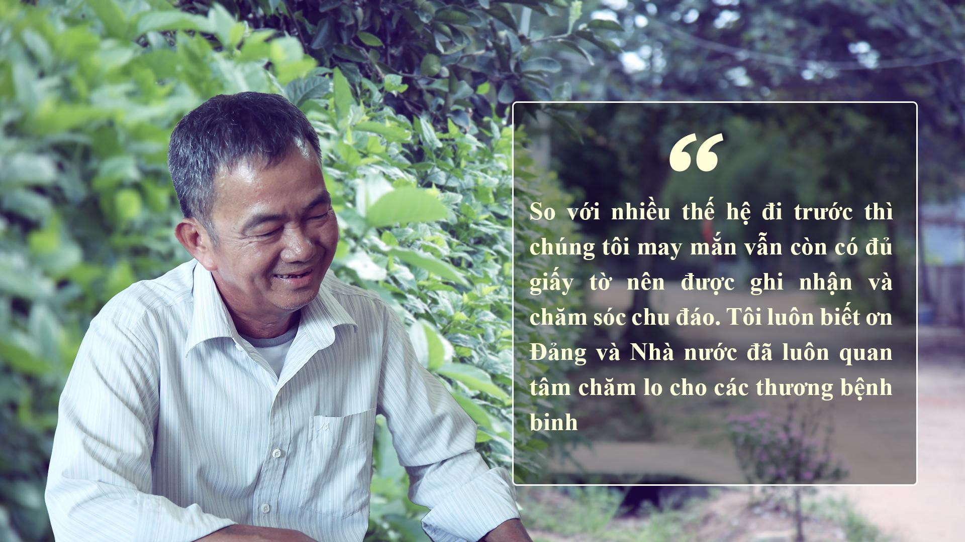 Những thương binh như ông Tùng, ông Quý, dù tuổi cao, sức yếu, mang trong mình vết thương chiến tranh nhưng vẫn phát huy tinh thần người lính cụ Hồ, sống gương mẫu. Ông cũng chỉ đau đáu một nỗi niềm, có nhiều đồng đội của mình, đặc biệt là những thế hệ đi trước ở quanh làng quanh xóm, cống hiến nhiều nhưng chưa có đủ hồ sơ giấy tờ chưa được hưởng chế độ xứng đáng.