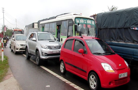 Hàng trăm ô-tô mắc kẹt trên quốc lộ 1A đoạn qua huyện Bố Trạch (Quảng Bình) sau vụ tai nạn.