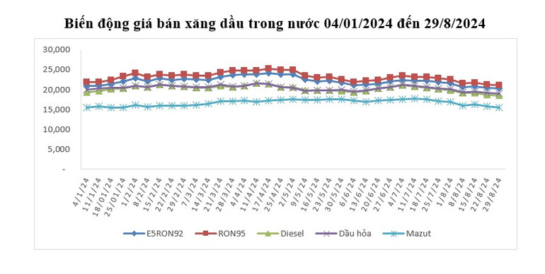 Việc điều chỉnh giá bán các mặt hàng xăng dầu do thương nhân đầu mối kinh doanh xăng dầu, thương nhân phân phối xăng dầu quy định nhưng không muộn hơn 15 giờ ngày 29/8.