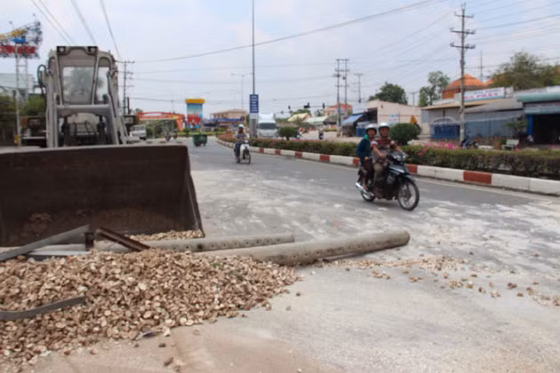 Cột điện gãy đang được khắc phục.