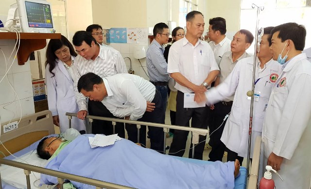 Lãnh đạo địa phương thăm nạn nhân Hà Tấn Tri tại bệnh viện tỉnh.