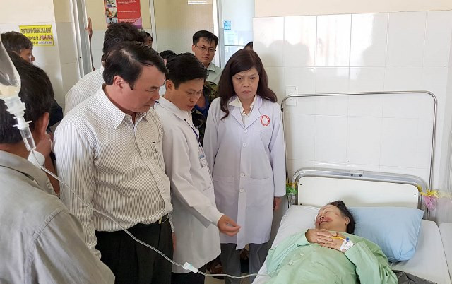 Lãnh đạo địa phương thăm nạn nhân Nguyễn Thị Mộng Hoa tại bệnh viện tỉnh.