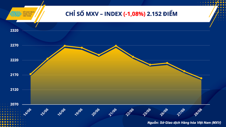 Trong 1 tuần giao dịch vừa qua, chỉ số hàng hóa này giảm đến 4 trên 5 phiên, phản ánh xu hướng suy yếu của giá hàng hóa nguyên liệu thế giới. Giá trị giao dịch toàn Sở đạt mức 4.900 tỷ đồng.