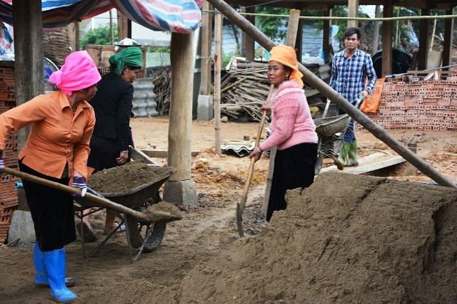 Đối diện với ngôi nhà mới của anh Lưu, nhà của chị Lường Thị Dơn cũng đang dần hoàn thiện. Bên đống vữa mới trộn, các thợ xây nhanh tay thi công những phần việc dang dở. Buông việc, cầm chiếc nóng quạt giọt mồ hôi trên khuôn mặt tươi rói, chị Dơn cho biết: Xong phần mái, quét vôi nữa là dọn về ở rồi! Năm nay được đón Tết trong nhà mới, gia đình mình vui lắm!
