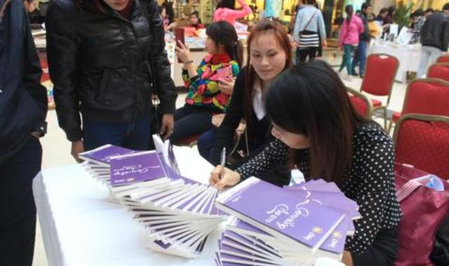 Tác giả ký sách cho bạn đọc tại tọa đàm về sách do Alpha Books tổ chức.
