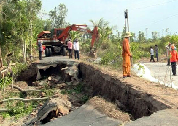 Theo cơ quan chuyên môn, nguyên nhân sạt lở do hạn hán kéo dài, mực nước hạ quá thấp nên chế độ thủy nhiệt bị ảnh hưởng nghiêm trọng, từ đó làm sạt lở đất đắp nền đường.